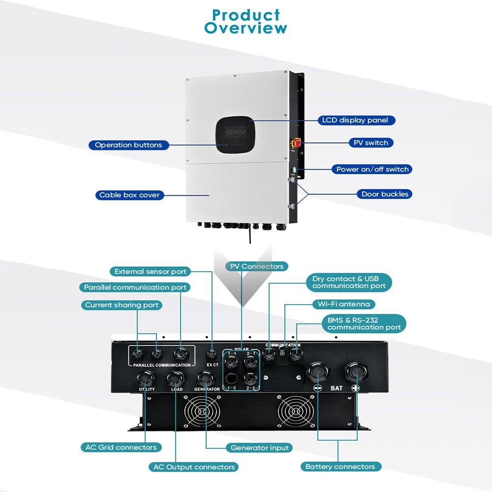 - 📱【Smart Monitoring & Reliable Backup】 WiFi/App monitoring for real-time energy tracking. Perfect for solar self-consumption, backup power during outages, and reducing electricity bills. Compatible with off-grid, hybrid, and grid-tie systems.